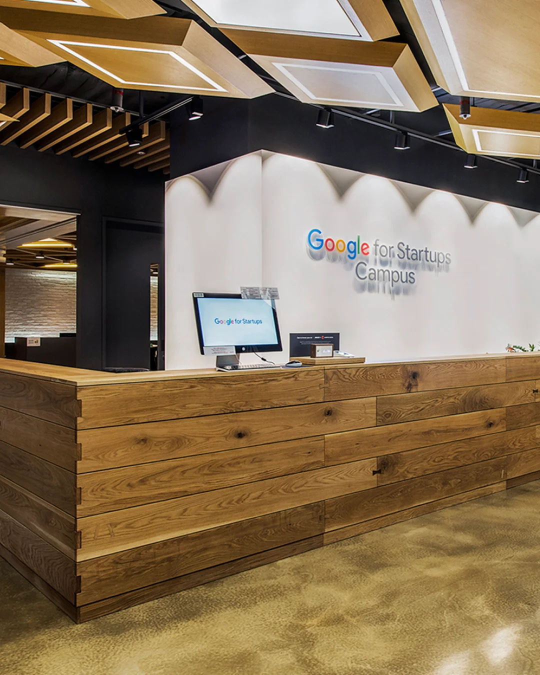 Following the renewal of the Google for Startups Campus brand identity, the campus reception area was redesigned and renovated to align with the updated branding.